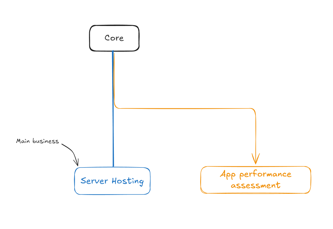 "My Cool Business & Associates" has server hosting as its main business or core, that's where it gets the majority of its profit.