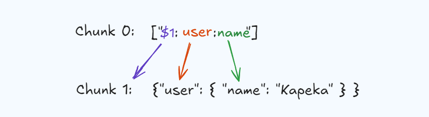 _prefix is a normal string, so it stays the same, but the 𝓰𝓮𝓽 property of _formData contains references that React will resolve. Since chunk 1 has already been resolved earlier, this works cleanly.
